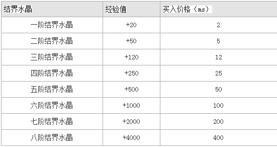 通过使用结界水晶,可获得结界灵力的提升,并提高结界等级,结界等级共分为50级。