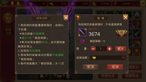 《我们的传奇》装备投保界面