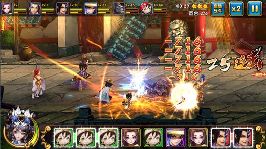 除了技能方块之外,还会随机出现圆形的武将奥义技能大招,玩家可以在对付大BOSS的时候将累积的奥义大招技能及三消技能方块连续点击,即可达到最为爽快的BOSS暴击,一招制敌!