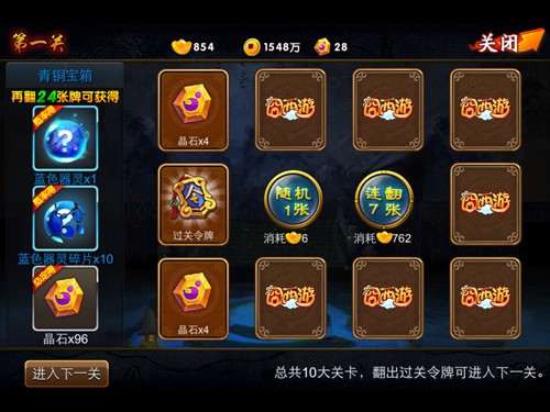 上述所需的晶石可以从神器秘境中获得,在《囧西游》中,玩家可以通过进入神器秘境来获得翻牌的奖励。秘境共有10道关卡,通过在翻牌过程中所获得的过关令牌才能开启下一道关卡。在翻牌过程中还能有机会获得器灵或器灵碎片、晶石的奖励。每日翻牌到一定的数量还可以直接获得相对应的宝箱。