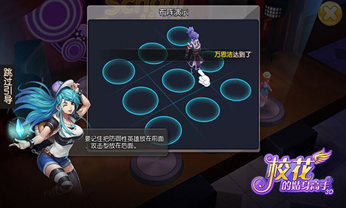 《校花的贴身高手3D》匠心独具的“九宫格+羁绊”特色回合玩法,是实实在在地燃烧脑力不做无脑挂机的手游。阵法中九个格子最多可放入七名英雄,是将肉盾英雄放在最前方做安全派,还是将攻击型英雄放在最前面做速攻党,全依你的喜好!同时羁绊系统使英雄在搭配上更添难度,不同角色的组合搭配,或许会让局面向完全相反的方向发展。