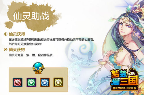 传说中兵器具有灵性,《梦梦爱三国》的武将们都是驰骋沙场的战神级人物,自然也应该有仙灵傍身啦!新版本中就会开放全新的仙灵玩法,只要在许愿树下许愿,就能获得特别的许愿石,用许愿石就可以兑换仙灵啦,装备了仙灵的三国英雄会更加厉害哦!