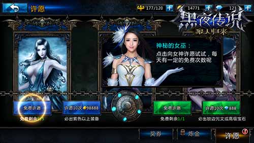许愿是《黑夜传说之狼人归来》不可错过的福利,开启许愿功能后,丫丫再次如约而至,告诉我们可以领取免费的福利。如今,每天首次登陆小编我都会去测试一下今天的运势,看看有没有新装备可以更换,或是新宝石可以镶嵌,就这样过了一天又一天。