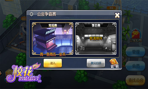 《校花的贴身高手3D》新版本重磅推出巅峰季后赛,这是游戏在现有的公会战基础上新增的玩法,新玩法以赛季的形式推出,每周末都会集结各战区最强公会,再从中选出独一无二的王者公会称霸所有战区,是做逃兵还是做迎难而上的强者,就看你的抉择了!