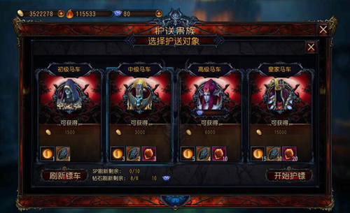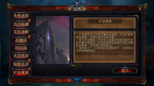 贵族出行,当然要保镖护航。护送贵族活动可以随时参加,只要你有空当然不能错过。在护送的20分钟的时间里,你可以做其他活动互不耽误。而贵族们当然也分三六九等,消耗技能点和钻石刷出皇家马车,回报也是杠杠的!