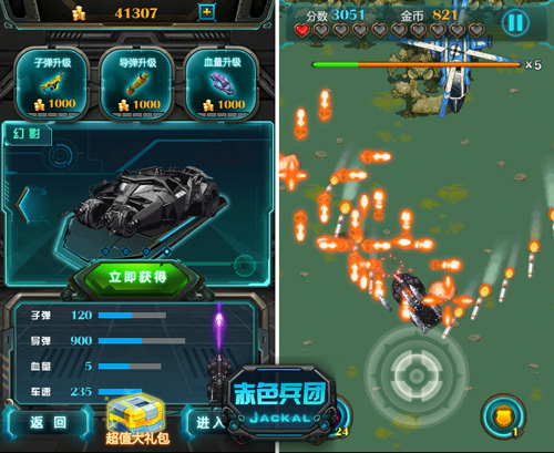 如果你不仅钟爱华丽霸气的外观,还渴望强大的火力,幻影战车值得你拥有!幻影战车--以科幻战车为原型,流线型的车身,配上精细的外观设计,华丽又不失霸气;火力上,最初就可发射3束子弹,升级到最高级后还可变为飞鸟!