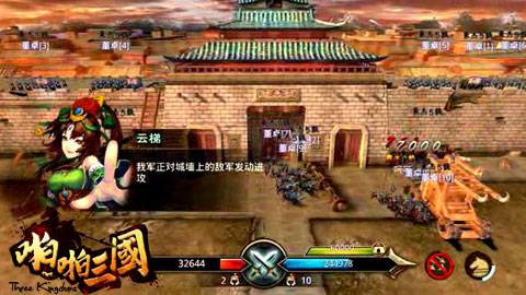 在《啪啪三国》的新版本中,我们加入了全新的PVP系统——国战。它将实现多人同屏战斗,并有城战、平原战两种战斗方式。主公们不仅需要考虑如何作战取胜,还要兼顾自己手中的资源,招兵买马修筑城池。只有更好的运用战术策略才能在国战中攻无不克所向披靡。每一场国战中共有魏国、蜀国、吴国、群雄4个国家,最少4个服务器为1组,若干个服务组成一个国家。国战的奖励为“战功券”,玩家可以用它在商店中兑换一些挑战中无法获得的武将觉醒印或是堕天印。