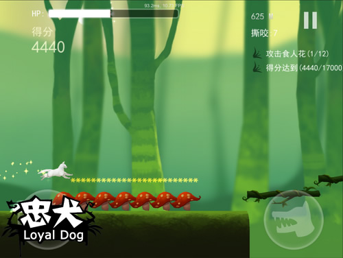 除了横版跑酷游戏常见的平地和大坑之外,《忠犬》中还加入了大量坡段,浮空平台,分支路线等内容,让狗狗的狂奔之旅变得更加惊心动魄,高分与技巧相关联,更高的反应和观察成为保障安全的必备条件。除此之外,狗狗们会随着奔跑不断消耗体力,千万不要以为躲过所有危险就表示安全,在奔跑中还要不断收集道具用以回复,让游戏难度再度升级。