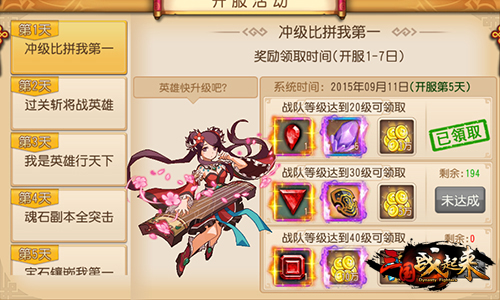 第三重豪礼送给玩家的是以召唤神石和经验丹为主的奖品。玩家只要在游戏中搜集到7名、10名和15名武将的时候就可以领取相应数量的召唤神石、经验丹和金币等。顺便一提,多多搜集武将进行英雄进阶是提升战队战斗力的核心关键。