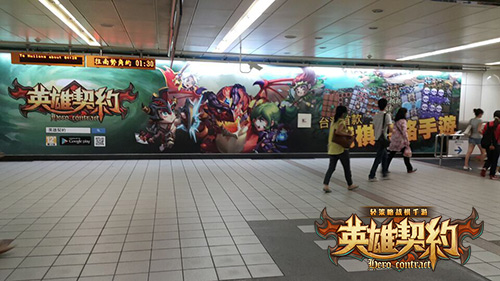 在中国台湾,《英雄契约》也以铺天盖地的实体广告,抢占大家的眼球。地铁站、台北小巨蛋体育馆,每一张巨幅广告的出现,都昭示着这个与众不同的轻策略战棋手游的诞生。