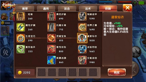 在《九阳神功》手游中,战场内的装备按类型可分为攻击、防御、法术、通用、鞋子等等,每一个装备都有着不同的作用,对于英雄的助益也不尽相同,在一定程度上可以对战局起到一定的辅助作用,根据战场实时战况合理搭配装备有助于全面提升英雄的作战能力。为此我们的研发团队根据不同的英雄类型为各位玩家打造了最适合的游戏出装。我们先来讲讲肉盾型英雄的出装。