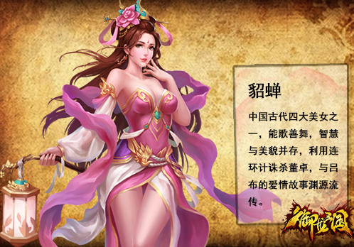 古代四大美人之一——貂蝉是个颜值和智慧并存的女子,连环计的始作俑者,与董卓、吕布上演了一段爱恨情仇三角恋。在《御龙三国》中,貂蝉属于敏捷性武将,有着超高的闪避能力和法攻。招牌技能“倾国倾城”能随机对两个敌人实施眩晕伤害,所以主公可千万别被她的美貌所迷惑哦。