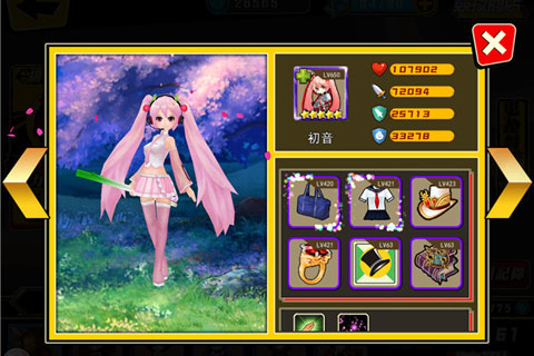 初音:穿上幻装的大招可以回复己方全体生命值,角色升阶为紫色时,可以增加己方20%法防的,所以竞技PK法系菜刀队简直是有着得天独厚的优势,加上自己身超高的防御血量和额外30%的闪避几率,永远可以让自己笑到最后!