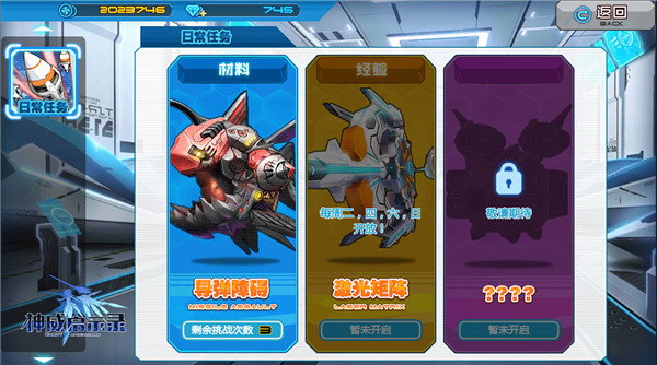 进入活动关卡,导弹障碍和激光矩阵分别对应材料和经验奖励,并且各自开放时间不一。更多神秘玩法也在等待开放中,骑士们不要太激动。此外还可以根据战队的同步率自主选择难