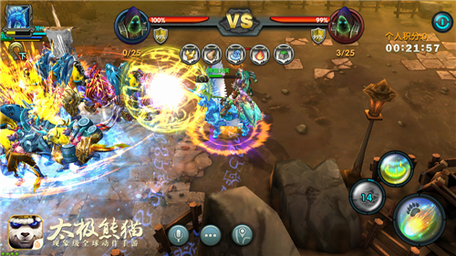 《太极熊猫》是由蜗牛数字开发的首款动作ARPG手机游戏,拥有美式漫画与东方水墨元素结合的独特风格,采用3D端游引擎和真人捕捉技术打造,首创浮空连招格斗,带来全新畅爽打击体验。同时,游戏中还将MMO化和重度交互玩法移植到手机上,多人实时对战、实时组队副本、多人BOSS战、天梯巅峰对决、巅峰联赛、25VS25野外团战、战骑系统、公会跨服争霸、武神转生、职业切换、3VS3战队竞技等诸多玩法都在《太极熊猫》中得以实现。在新资料片“祭司的召唤”中,还突破性地加入了5VS5动作推塔的全新竞技模式,第六职业熊猫祭司强势登场,更有师徒系统、武神羁绊、炫酷坐骑等全新玩法,碎屏级掌上团战一触即发,享受全新畅爽体验!