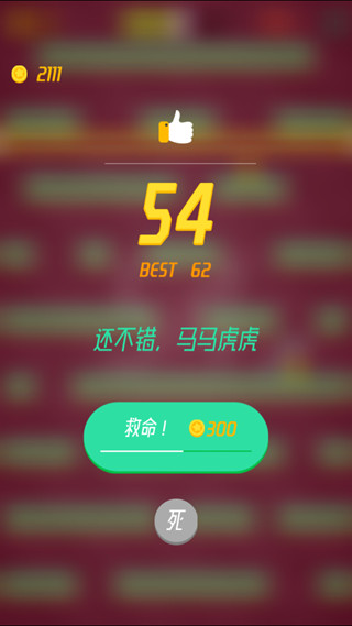 “男人值”是游戏中的亮点所在,所有设定都围绕这个话题展开。游戏中,小球每下降一层,“男人值”则增加1点。随着小球不断下降,局面将越来越难以掌控,不管是屏幕上方的激光,还是平台上的地刺,都会终结你的“男人值”,让你颜面无光。更好玩的是,游戏中会出现一些内涵文案,像是“在床单上也滚这么慢?”、“赶快滚,一大波女汉子要超过你了”等等,更是让人欲罢不能,愈加想表现男人魅力。当然,“男人值”这种设定,还是需要炫耀的,不然怎能吸引妹子们的注意呢?动动手指,将你的“男人值”分享到朋友圈,坐等女神来搭讪!