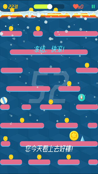 《实力滚小球》画风是当前主流的简约小清新风格。玩过经典游戏《是男人就下一百层》的玩家,应该会很快熟悉这款游戏。在《实力滚小球》中,你扮演的是一位真男人又或是一位身经百战的女汉子。玩家需要控制小球在平台上不断下降,同时尽可能的收集金币。游戏并不像看起来那么简单,一旦小球碰触到平台上的地刺,或是被上方迎面而来的激光碾过,就会死亡。所以,需要你打起十二分精神,在前进的路上快速做出判断,应该走哪条路才可以吃到更多的金币,并且不会掉入陷阱。