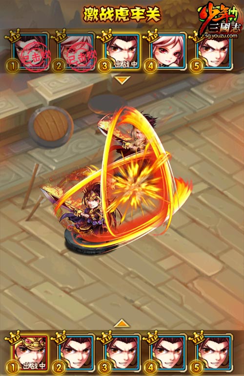 激战虎牢关采取排位对决的战斗方式,根据组队的排位决定出战顺序,败者下场,胜者继续对决,每人最多可以战斗三场。