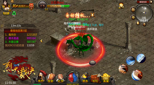 《烈火裁决》作为业界良心之作,商城是不出售装备的,所有装备只有靠打,因此击杀BOSS是获得装备的主要途径,当然,每日的封魔塔和除魔副本中的BOSS也不能错过。在每个主城的NPC百晓生处可以查询世界BOSS和魔界BOSS的刷新时间。此外,魔界每层有4个BOSS,花费神魔令可以进入魔界击杀魔界BOSS。还有每2小时开启1次轮回道活动,活动每次半小时,活动中共有6道,每道都有3个BOSS。另外切记参与每天两次的秦陵地宫,里面的BOSS会大爆,爆的东西所有玩家都可以拾取。还有帮会副本第二层的9个BOSS也千万不要错过。