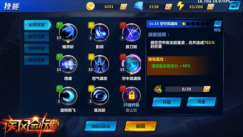 区别传统动作游戏,《疾风剑魂》告别千篇一律的技能招式,别具匠心开辟技能搭配玩法,一百位玩家就有一百种搭配!技能搭配更加讲究策略性,每种技能各有自己的稀有属性,破甲、击退、束缚、凌空追击等,让你任性搭配出属于自己的连招体系,无论你是控制流还是敏捷流,抑或是暴力输出流,统统都能在这里实现!