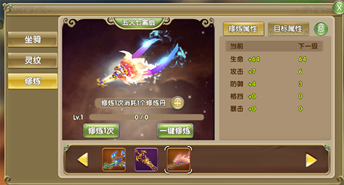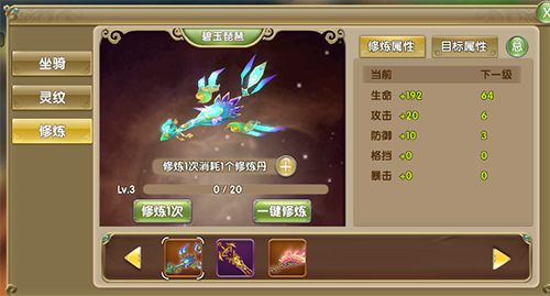 新坐骑也即将和大家见面了,handsomer and handsomer(不止是帅气),而且,新坐骑的属性也是非常可观的哦!另外,大家关心的肯定是消耗道具吧?坐骑修炼消耗的是修炼丹,小道消息,目前只能通过仙阶纯阳丹合成而来,道友们可要加油囤纯阳丹了哦!