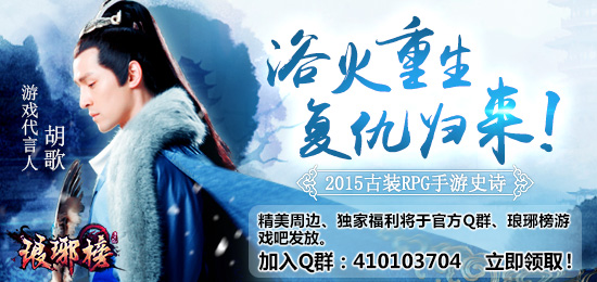 由掌上纵横、爱奇艺、乐元素联合发行,第一古装男神胡歌代言,2015古装RPG手游史诗《琅琊榜》新版本今日上线!五大英雄携手出战,陪你实力脱单;别慌剁手,全服团购福利嗨翻双十一;琅琊榜单五榜齐开,十大美人、公子会花落你家吗?