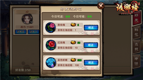 琅琊公子、美人的评选会根据收到花的数量为依据,大家可以消耗元宝为好友送花,同时获得相应经验值,谁是你心目中的佳人抑或才子,立即送枝花助他上榜。