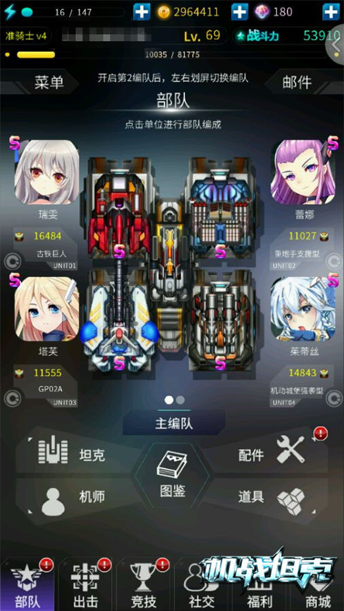 所谓“没装备玩个毛游戏”,这个道理在《机战坦克》中也是一样——不过,这里的装备并不像RPG游戏一样要合成、强化、附魔,指挥官在意的是合理的搭配,有时候,一个绿色品级的部件,在战车上发挥的实力远胜于紫色品级。