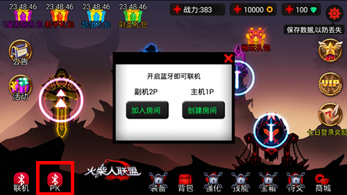 暗黑格斗江湖风起云涌,唯有战胜那来自四面八方的对手,才能成为至尊!在此,《火柴人联盟》给玩家提供了一个1V1的舞台,只要开启蓝牙功能,对战双方便可进行实时对战,谁才是最后的赢家?谁会成为万人之上的“竞技之王”?答案尽在《火柴人联盟》的刀光剑影中。