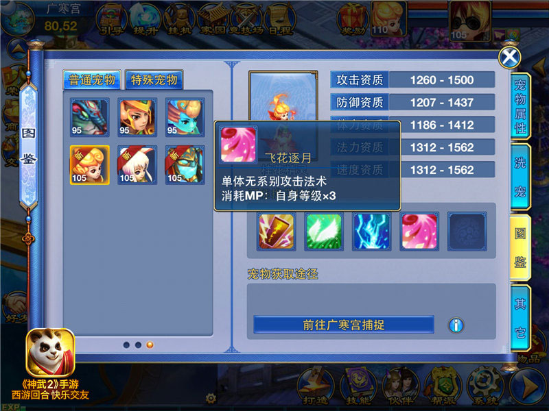 新地图的诞生意味着新宠物的降临,在这充满天地灵气的广寒宫,孕育着神奇的宠物。《神武2》手游已经开放105级新宠,每只宠物有着各自的特点,天性活泼的月影兔、灵体战士月光、充满灵气的桂花精灵。三大新宠都有着自己的过人之处,赶紧来感受一下新宠的魅力吧!