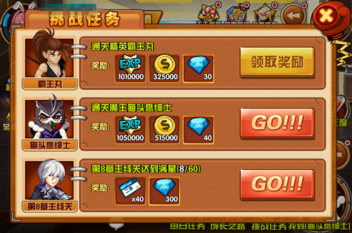 “挑战任务”根据难易程度分成了三个模式,最基本的就是主线任务啦,也就是每天要进行的日常任务。除了产出必要的经验和金币外,还会产出制作宝物的稀有材料,这些可都是提升战力的绝佳好伙伴。在特殊的关卡中还会随机掉落珍贵的附魔道具,刷神器,冲战力,挑战任务就是这么任性!