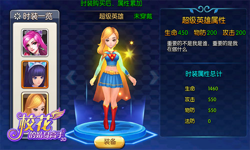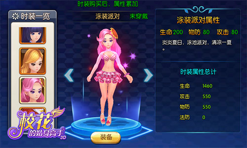 《校花的贴身高手3D》获取时装方式多种多样,只要满足一定条件便可将时装全部带回家,同时这些时装不仅能让主角更加漂亮,还能为主角增添战力,如果集齐多套时装还会有意想不到的效果,这效果是能让玩家抱得美人归还是活的无上神力,就等玩家亲自探索啦!