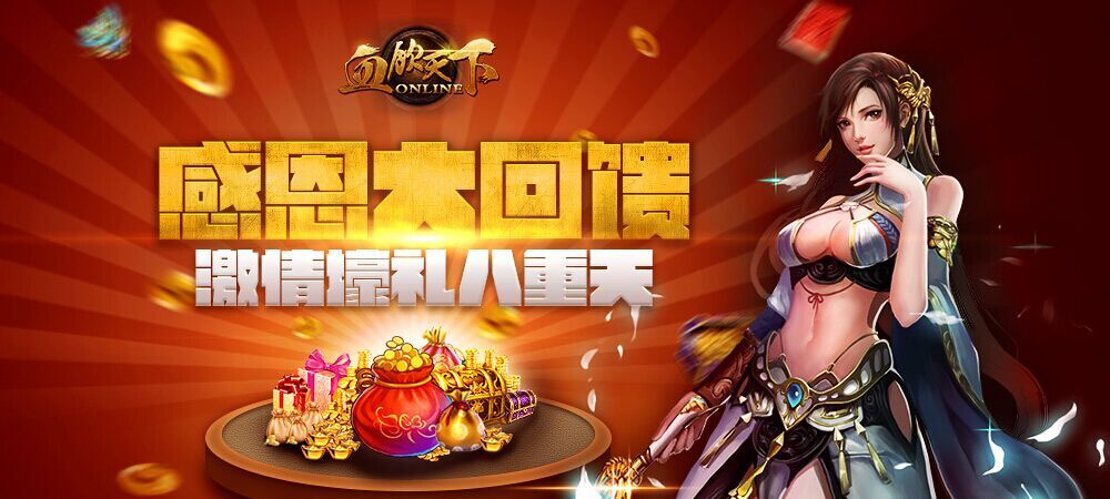 十一月不冷,热血再战,感恩节《血饮天下》大回馈,参与九大活动即可获得各种壕礼,助君战力继续飙升,大乱斗夺金矿,成就PK之王。