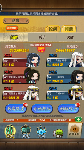 1V1论剑是否已经不再饱富激情?单打独斗是否也再难以激起你的胜负之欲?新版本“问鼎系统”即将开启!届时,玩家可通过3V3的形式进行论剑PK,更加考验团队协作,更为需求战略搭配,你能否最终问鼎巅峰?等你来战!