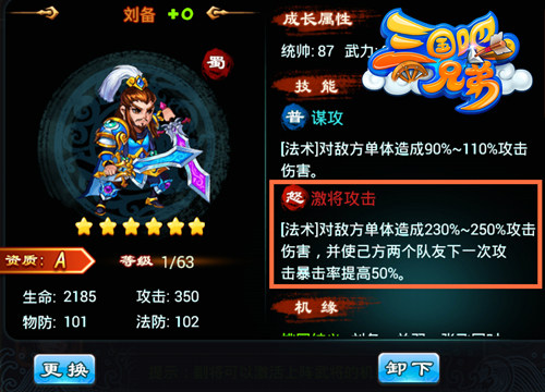 主公的重新回归,势必影响《三国吧兄弟》的战术潮流。以刘备为例,蜀国武将以高伤害和暴击著称,而刘备的技能恰恰能继续增强多名队友暴击率,有他在前置位,给全队带来的增强是难以估量的。