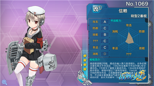 最被提督所信赖的R国船只,听名字就知道了,就是“信赖酱”——她的前身是谁,我们假装不知道就好了。改造完毕后“不死鸟的守护”技能提供给自身及上方一艘船舰12点装甲/对空/回避——明明是小学生,却Get了“坦克”属性。