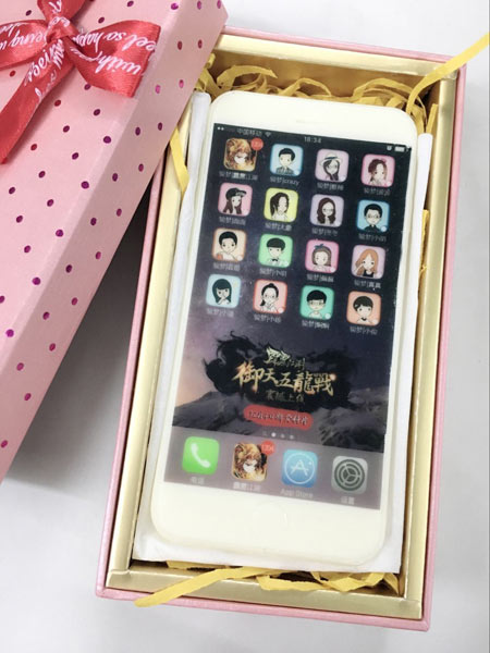 《霹雳江湖》市场商务团队集体亮相Iphone6巧克力手机,史上最Q萌的iPhone6你想拥有吗?参加《霹雳江湖》官方微博转发活动就有机会获得可以吃的iPhone6手机,还可以定制个人头像、游戏阵容等个性化显屏内容哦!