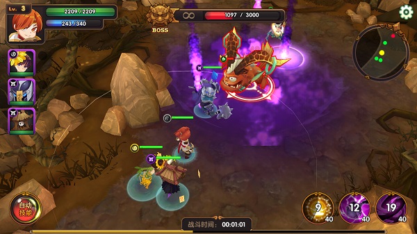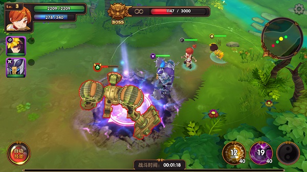 山清水秀如画仙境,主角带3只符灵(宠物)群殴BOSS,点出操作即时战斗任性走位,攻防辅一体的阵容策略,还有养眼的妹纸符灵加油助阵,华丽的紫色技能大招要多拉风有多拉风!