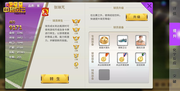也许在其他游戏中,装备系统无非就是增强游戏角色能力的道具罢了,但在《中超风云》中,装备系统却极具个性化,也彰显出球员的个人特色。《中超风云》的装备系统根据每个球员地域、性格、外貌进行了特殊设置,例如张琳芃的文身。众所周知,张琳芃十分酷爱文身。所以在《中超风云》中,你会在张琳芃的装备栏中看到独特的酷炫文身,极具球员个人特色。