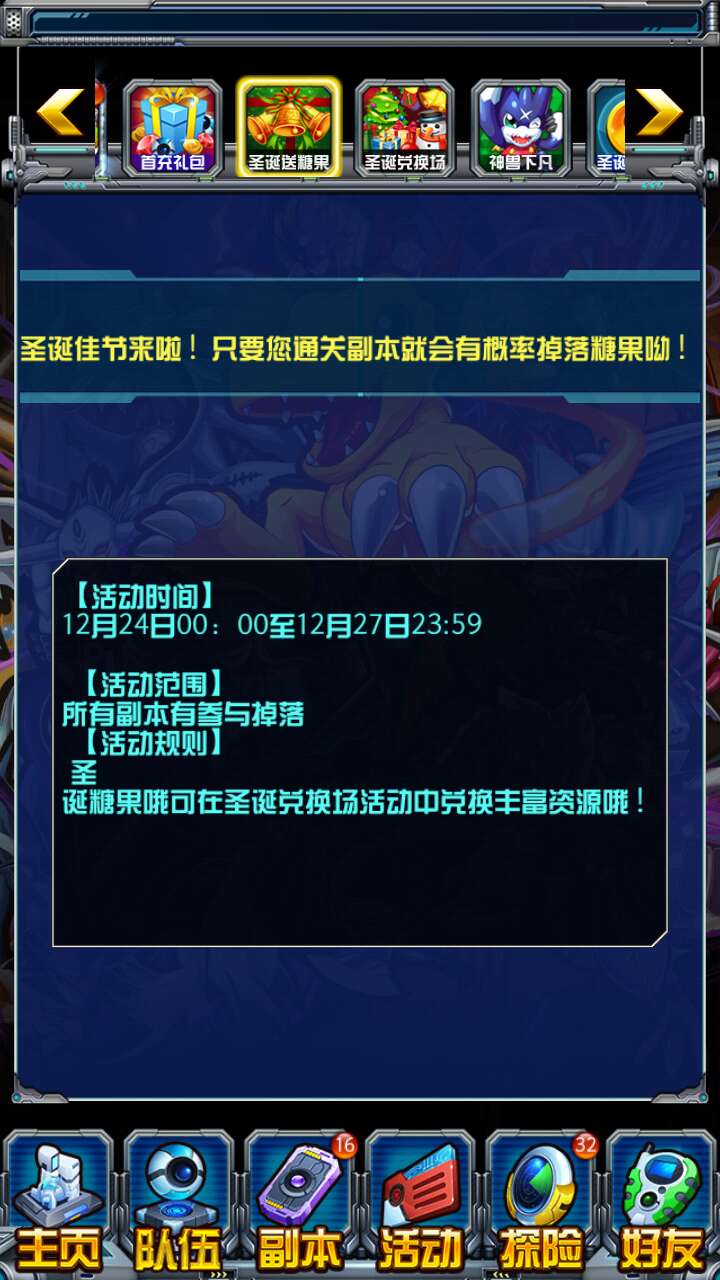 【活动内容】:圣诞佳节来啦!只要您通关副本就会有概率掉落红包哦!红包可在“福利”玩法中兑换丰富资源哦!