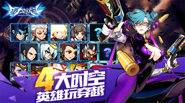 《时空炫斗》做为首个上太空的高能战斗动漫手游,齐聚了西游、战国、北欧、三国四个时空的几十个超强英雄角色,拥有上万种英雄搭配及上阵玩法。其炫酷的游戏画面,劲爆的音效和超强冲击的震屏感受将为玩家带来一场跨时空的震撼体验。