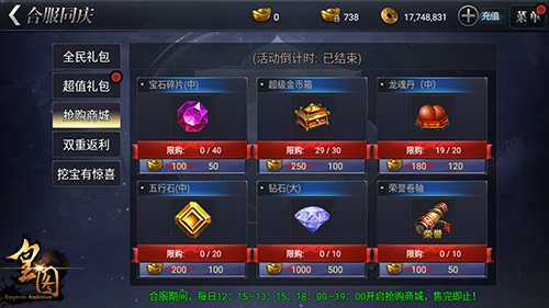 此外,在本次的9377《皇图》双旦狂欢活动期间,挖宝将会产出稀世神器“威震天下”套装,同时还有挖字集兑元宝大奖;活动期间,每一次充值都将获得双重返利;而在12:15-13:15和18:00-19:00这两个时段都会开放抢购商城,各种稀有道具绝对实惠!