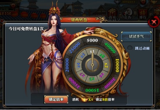 如果银两非常紧缺的情况下,玩家不妨消耗一定量的元宝,将下一次转盘的倍数锁定在8倍。以此抱走高倍率的银两。