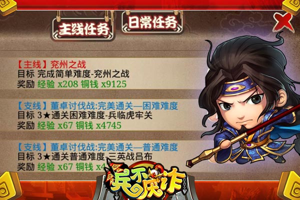 环锁盔甲,绿色品质,七万升一级。不知不觉,白板木盔都进化成了绿色环锁,看看这升级费用,是不是感觉手头一紧,脑子一热就想扫副本?慢!千万不要这样啊,扫副本可以解一时之痛,但是从长期来看是不利的!除了副本扫荡获得铜币外,还能通过做任务获得。《兵不厌诈》的主线、支线任务的奖励丰厚、循序渐进,跟着任务一路打下去可以获得多倍的回报,明显比扫副本强多了。