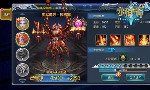 神也是不断进阶变强的,而从源神获取的力量也并不代表着真的如同神一般强悍无敌,一劳永逸,想要与神一样保持不败之地,需要跟随神的脚步,将源神一同进阶升级,每一品阶的提升都可大大增强源神的力量,而源神进阶所消耗的“荣誉”,玩家可从主线任务,竞技场,等各类日常活动中获得,突破战力无极限。