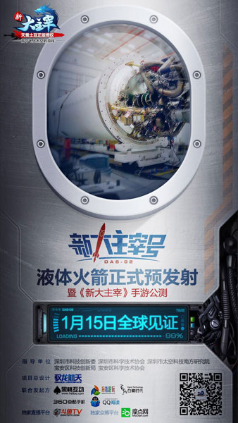 卢驭龙作为互联网和航天领域首次跨界合作的关键人物,也是“新大主宰号”液体火箭发射的项目总负责人,表示到目前为止计划都很顺利,每一步都按照正常的时间节点跟规格实现,因此他对这次发射非常有信心。“新大主宰号”液体火箭发射暨中国首个私人太空探索计划,是由深圳驭龙航天科技有限公司总设计,黑桃互动与拇指游玩联合白鹭时代、360奇酷手机、摩点网、QQ阅读、斗鱼TV七家不同领域的互联网公司共同发起。私人液体火箭“新大主宰号”的发射,对于他主宰自己的生活和对于中国的私人航天发展都是重要的一页。1月15日,“新大主宰号”正式预发射,不容错过。