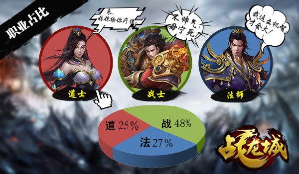《战龙城》手游所有职业中,战士占48%,法师占27%,道士占25%,法师当仁不让成为最火职业。相信此时,不少法师和战士玩家心里是一万个不服气,然而这并不能阻止战士最受欢迎的事实。广大战士玩家们表示看这张脸、看这肌肉,这是一个不但要靠脸还要靠才华世界。