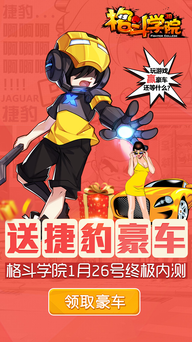 除了震惊业界的捷豹豪车,还有海量6S相送哦!《格斗学院》终极内测,福利拿到手软,赶快下载游戏,查看更多活动资讯吧!