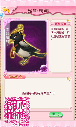 掠夺好友资源,让自己更快的成长是《甜心格格》手游的一大特色玩法。为随从搭配宠物,就需要掠夺好友的宠物精魄。此次首测,喜鹊这一象征吉祥的鸟儿当仁不让成为最受欢迎宠物,在众多萌宠中脱颖而出。