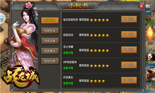 热血群战攻城手游《战龙城》是由好玩友独家代理的2016年度华人最稳定火爆私服。其稳定的游戏环境,千人同屏,流畅战斗,不再是梦想,为所有怀旧经典的玩家打造最稳定私人定制服; 经典私服泡点玩法,超高刷怪经验、挂机同时经验飙升,从此升级无忧;一刀秒怪,刀刀暴击,和兄弟畅意战龙城,激情诠释暴力美学;诛神灭天,十方俱灭,极品装备轻松获取,助你问鼎龙城之巅。现在拿起武器和兄弟聚首,决战龙城,再续经典!